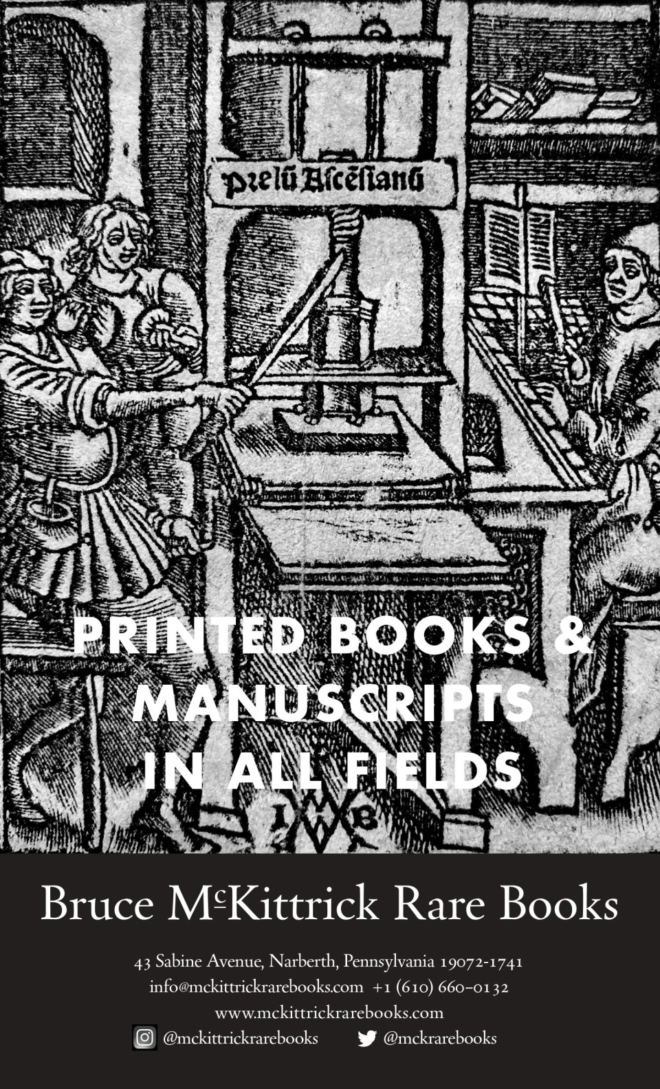 This website is a collaborative project organized and sponsored by the Bibliographical Society of America (BSA) and the Antiquarian Booksellers Association of America (ABAA). The BSA is grateful to the many booksellers who sponsor the Society’s Bibliography Week events each year, and urge you to learn more about them by clicking the logos below. Bibliography Week event sponsorship starts at $250: learn more and become a sponsor today.